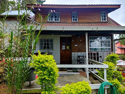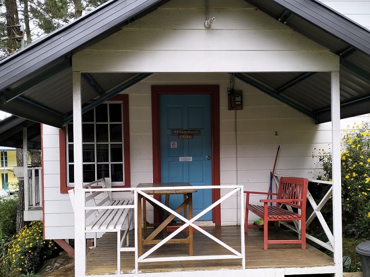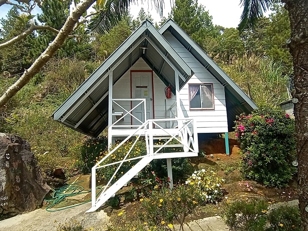 Two-storey detached cabin with 2 bathrooms, kitchen and 4 bedrooms.